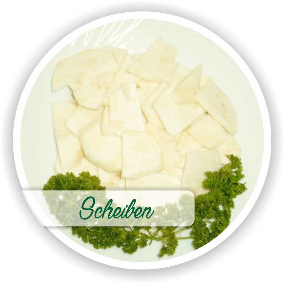 geviertelt, Scheiben, Scheiben Welle, Würfel, Stifte grob, Stifte fein
